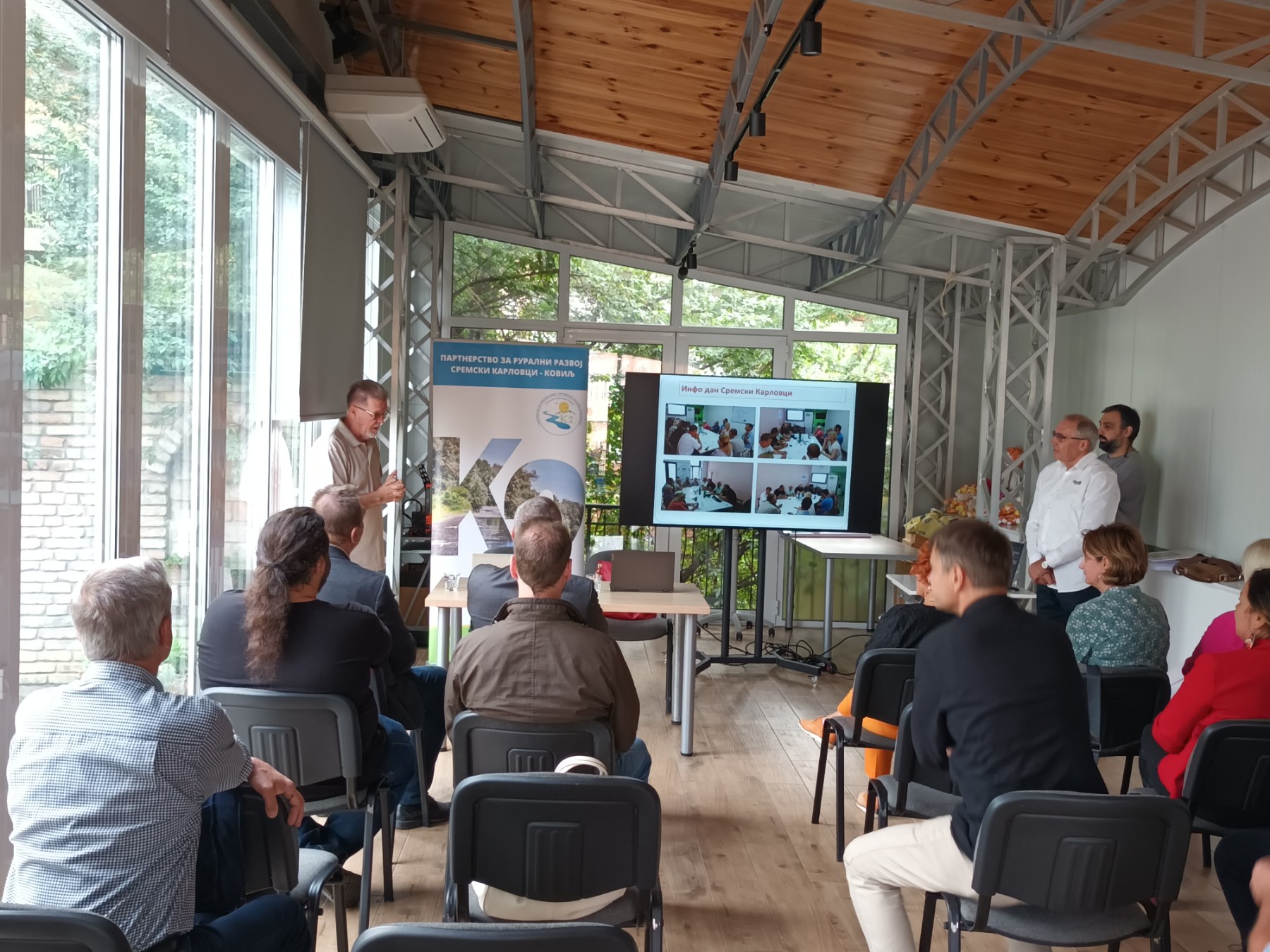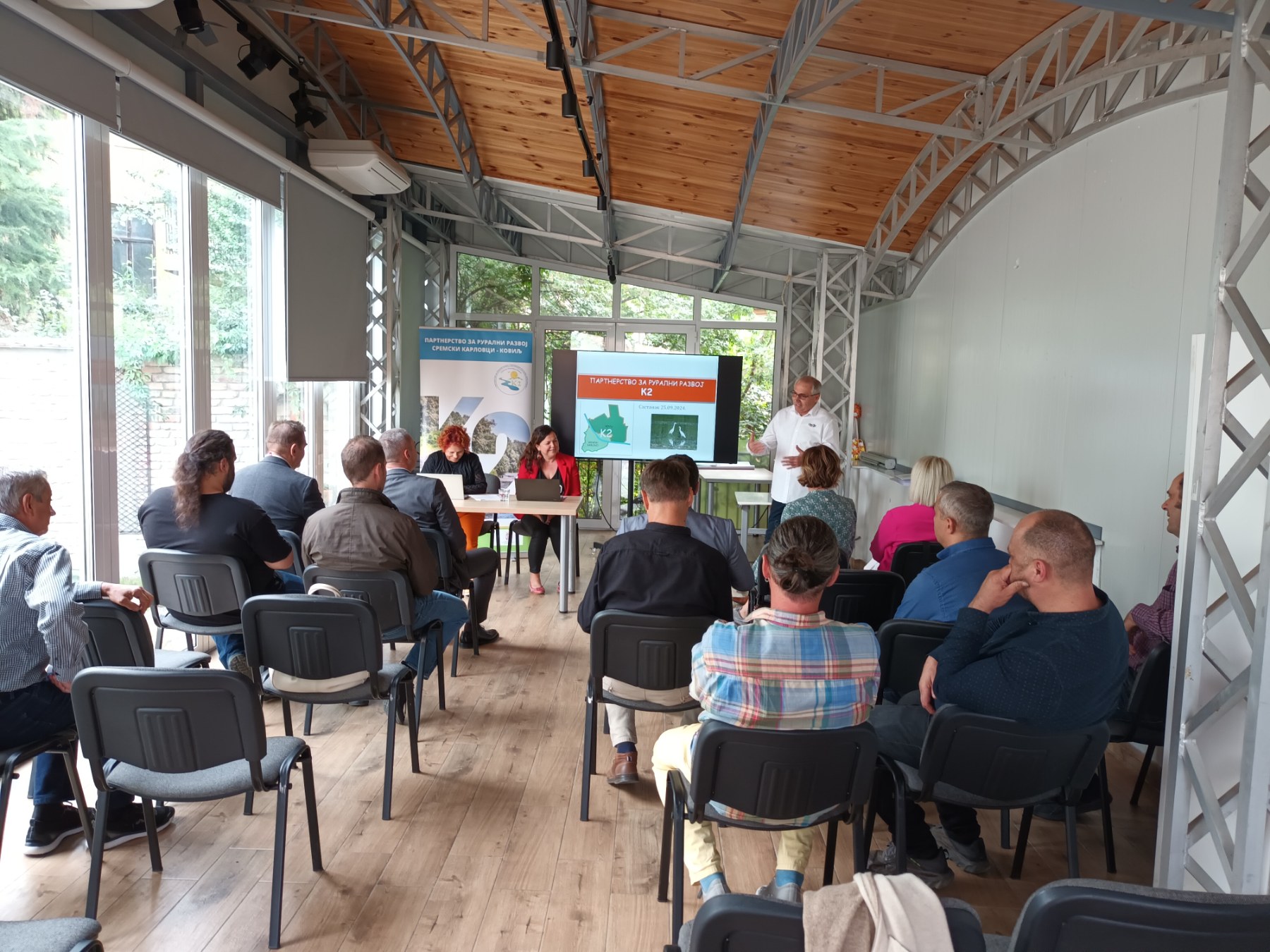 On Wednesday, September 25, 2024, at the Radulovacki Ecological Center in Sremski Karlovci, starting at 2 p.m., a meeting was held that was attended by representatives of the Ministry of Agriculture and the Ministry of Agriculture from Slovenia, representatives of the LAG Bogatsvo podeželja Ptuj, and representatives of the provincial Secretariat for Economy and Tourism, Local Government and JP Belilo, Partnership for Rural Development Sremski Karlovci – Kovilj (Partnership K-2), Vojvodina Mountain Movement, Dunav 1245, Benišek-Veselinović Winery, Kurjak Winery, Crkvenjakov Brewery from Kovilj, consultants for Ipard and others